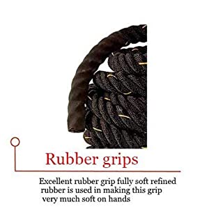 - Material: 100% Polydacron, won’t fray or leave fibers on the floor, wear resistant and durable, high tensile strength & we use Best quality rubber grips on both ends of battle rope