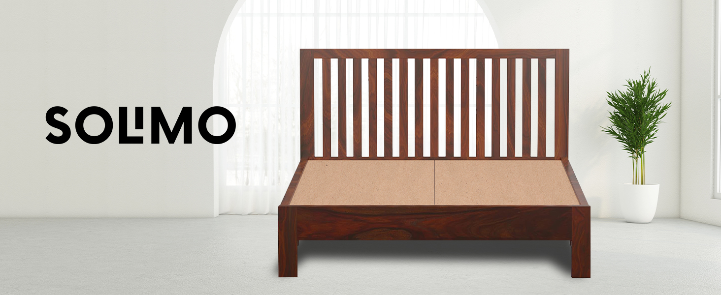 - Material: Sheesham Solid Wood with a premium teak finish. Mattress support is MDF board
