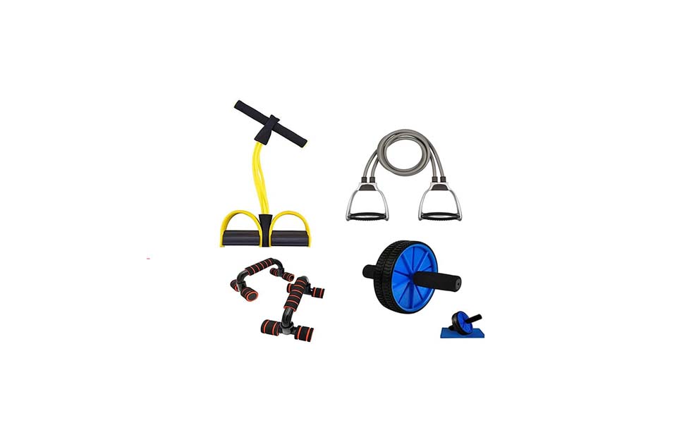 - COMBO DEAL: 1 Toning Tube -2 Rope | Push Up Bar - 1 Pair | 1 Tummy Twister | 1 AB Roller - 2 Wheel