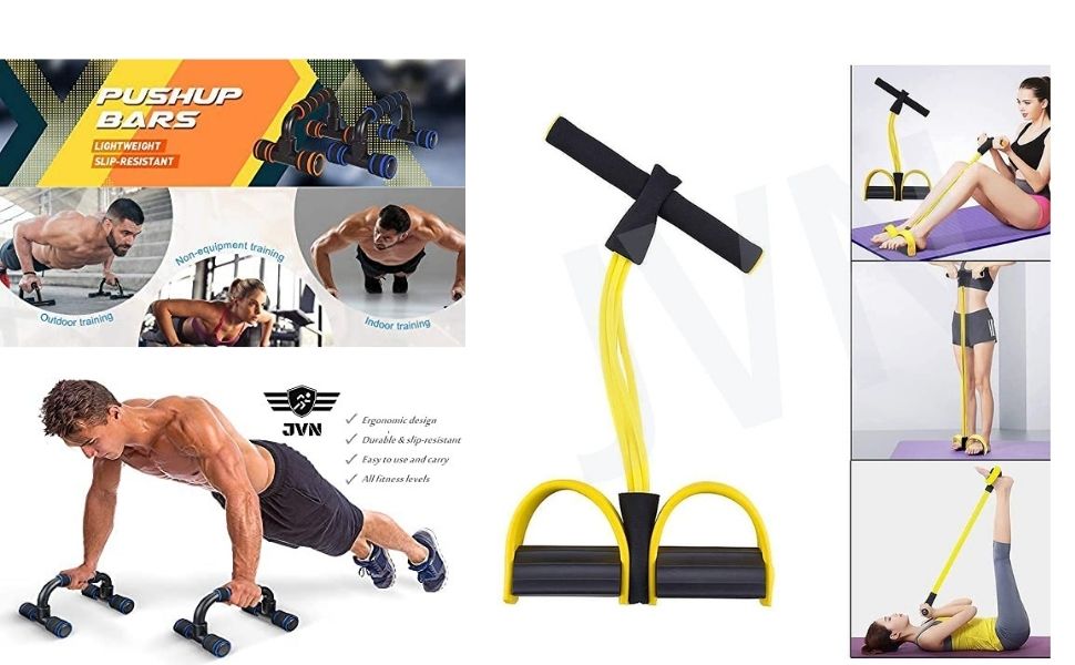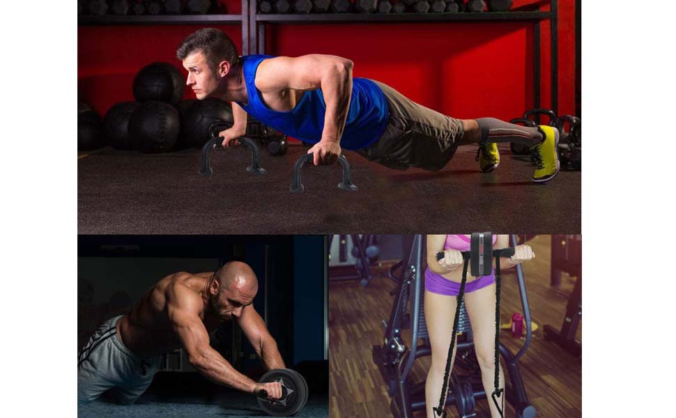 oft foam grips are comfortable to handle. It is designed to keep your wrists straight. Reduces stress on wrists and joints. COMBO DEAL: 1 Toning Tube | 1 Pair - Push Up Bar | 1 AB Roller | 1 Pull Reducer - 4 Rope COMFORTABLE - Cushioned foam handles provide comfortable and slip-free grip. The roller comes with a knee pad. The comfortable knee pad helps to maximize results of ab roll out exercises and protect your knees from getting hurt. Ergonomically Designed To Fit Small To Large Hand Sizes. Perfect For Men, Women, Seniors And Teens