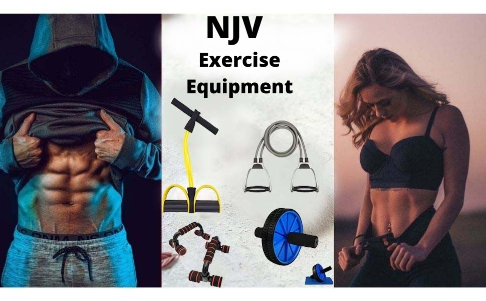 NJV Toning Tube & Push Up Bar & Tummy Twister & AB Roller (Combo Of 4) Full Body Exerciser Home Gym Exercise Equipment - Multicolour