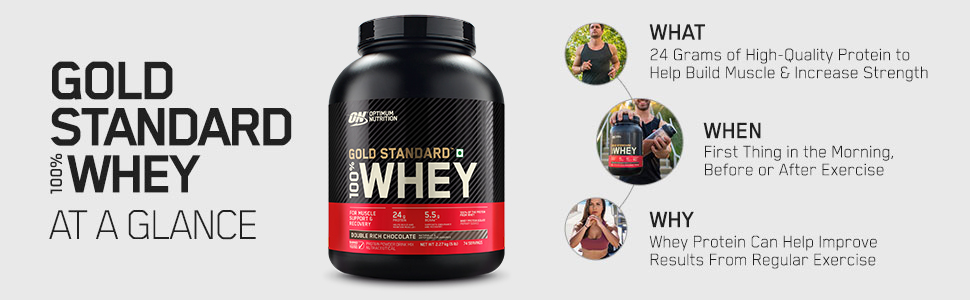 Each serving of the world’s best-selling whey protein powder provides 24 grams of high-quality whey protein primarily from Whey Protein Isolate, which has had excess carbohydrates, fat, and lactose ‘isolated’ out using sophisticated filtering technologies. The powder is also instantized for easy mixing using just a glass and spoon. With more than 20 different flavors – including naturally flavored options – there’s no doubt this is the Optimum Nutrition Gold Standard 100% Whey Protein.